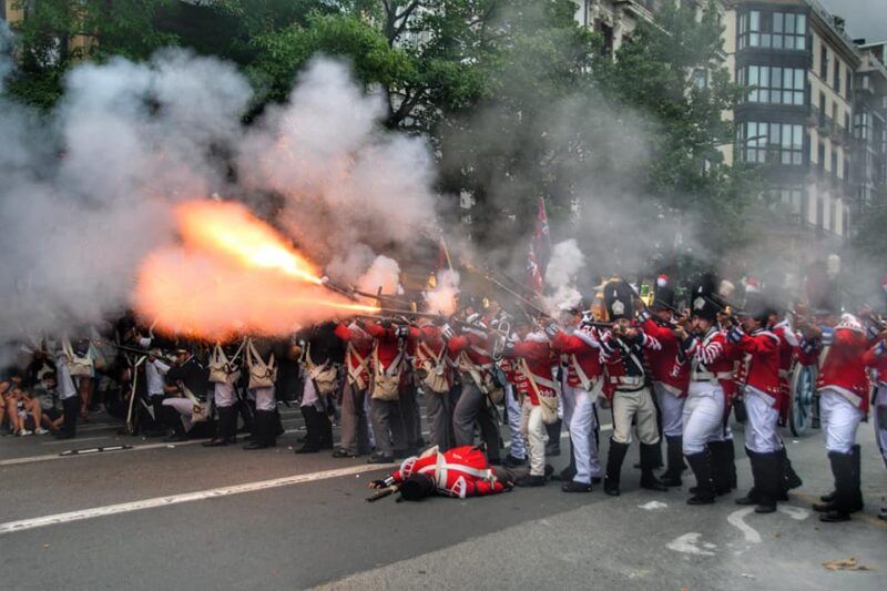 Un 31 de agosto de 1813, a las dos de la madrugada, y tras días de intensos bombardeos, San Sebastián quedó arrasada. Ocupada por los franceses desde años atrás, las tropas aliadas anglo-portuguesas entraron en la ciudad, manteniendo una dura pugna. Un incendio y el estallido de un depósito de munición francés hace replegarse a los franceses.