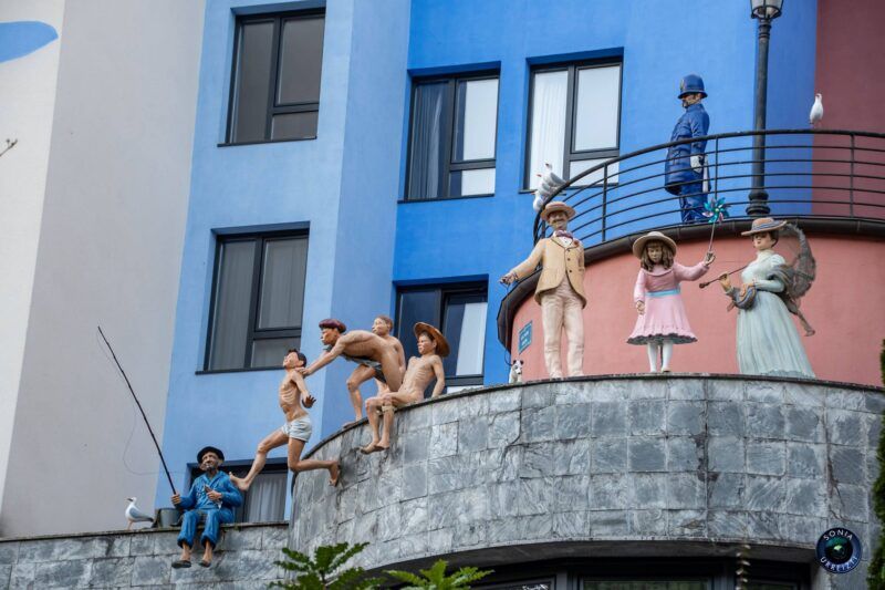 Me parece una delicia este Colegio Mayor, su cafetería repleta de adornos curiosos, y sobre todo, esta gran colección de esculturas de Alberto Saavedra sobre escenas de la vida cotidiana. No falta una fiel escultura de Txantxillo.