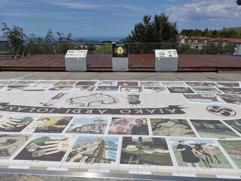 Nos llamó la atención junto al frontón un curioso juego de la oca gigante con bellas ilustraciones de costumbres guipuzcoanas, que apreciaréis mejor en el vídeo que adjuntamos.
