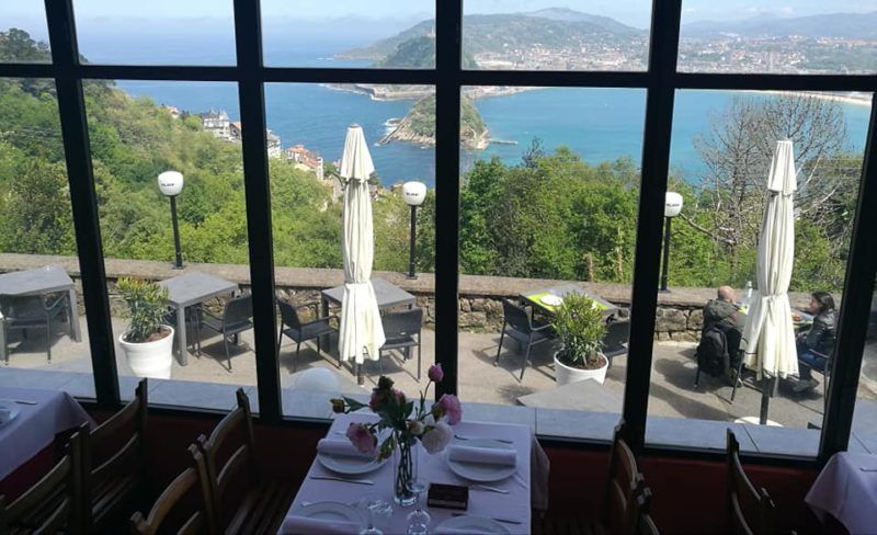 Te imaginas comer o cenar con estas vistas ? La mejor bahía del mundo desde las alturas, Jaizkibel, Ulía, Urgull y la Isla Santa Clara, pero todavía vemos Larrun, La Peña de Aia, Adarra, el Hernio… No hay entorno parecido.