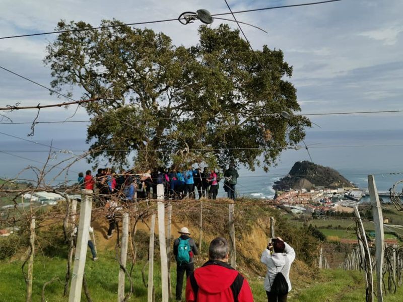 Solitario y misterioso en lo alto de la colina de viñedos que envuelve Getaria sobre los altos de Gárate, domina el paisaje un solitario alcornoque, Quercus Suber, el llamado Alcornoque de Getaria o de Meagas.