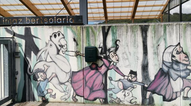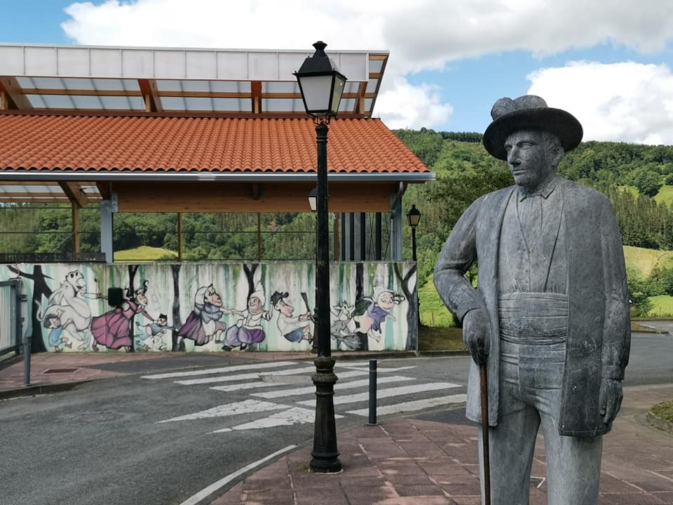 Sigamos un poco junto a la carretera hasta alcanzar la Ikastola Imaz Bertsolaria, el frontón y la pequeña ermita de Santa Bárbara donde se encuentra la escultura a tamaño real del Gigante, obra de Tomás Ugartemendia y las huellas del gigante que invitarán a meter el pie por aquello de las comparaciones…