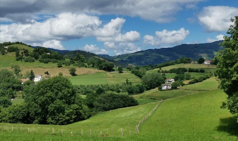 Pero sigamos subiendo hasta la colina para ir viendo estampas de postal de Altzo Muño en un gran entorno rural y alcanzar la Iglesia de Santa María de la Asunción, de estilo gótico isabelino ( siglos XVI-XVII), el pequeño frontón y casas a ambos lados de la carretera con vistas a los cuatro puntos cardinales.