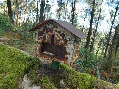 En pocos metros el montañero alcanza una gran cruz, sin inscripción alguna, que se supone será de recuerdo de los vencedores de la guerra y a continuación en la cumbre se descubren dos buzones, siendo uno de ellos del año 1960. Los posibles jóvenes y los veteranos habrán recuperado una excursión tradicional y clásica de la post guerra, un retorno al inolvidable y recordado pasado.