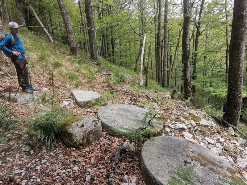 Seguimos el recorrido con dos referencias más, las ruedas de molino tiradas en la ladera y el mirador de Erroiarri.