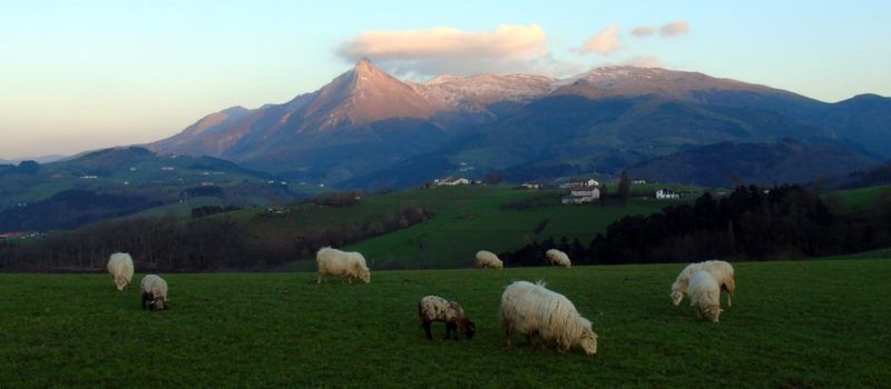 Suaves colinas con verdes prados plagados de ovejas y la cumbre del Txindoki dominando, como fiel exponente de un Goierri espléndido, amable, montañoso.