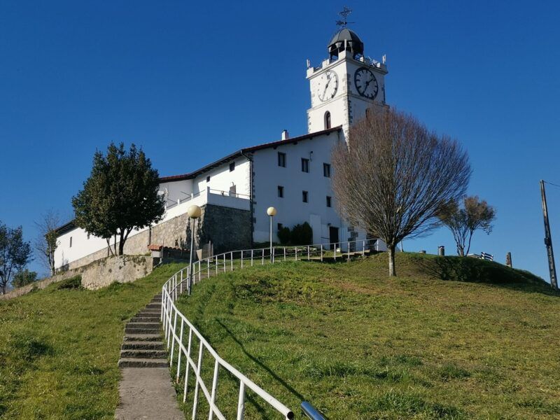 A fin de obtener una vista aérea de Azkoitia, subimos hasta la ermita de San Miguel de Iraurgi, con un reloj de 1859 de la empresa Zugasti e hijos. Fue uno de los hospitales de Azkoitia.
