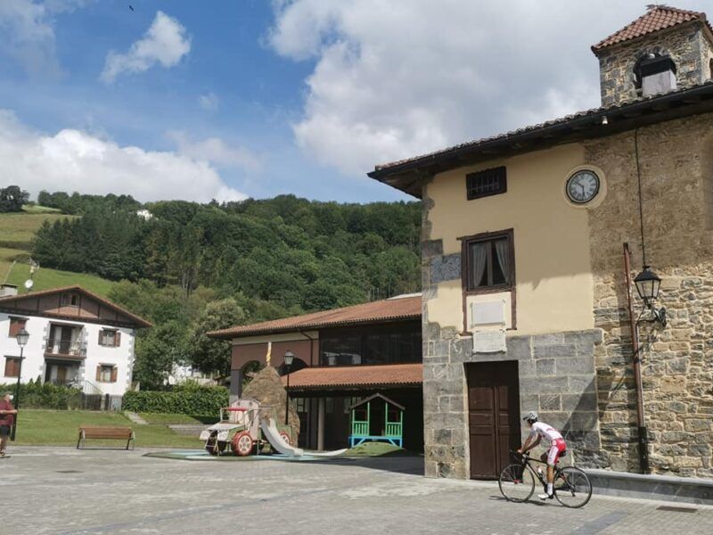 Todo es tranquilidad en Baliarrain, un pueblo pequeño pero privilegiado, rodeado de montañas amables con la silueta del coloso Txindoki o Larrunari y las Malloas dominando el Goierri. Cuatro niños con su bicicleta buscan algún camino y poco tarda en subir otro más adulto con el maillot blanco y rojo de un club de Ordizia.