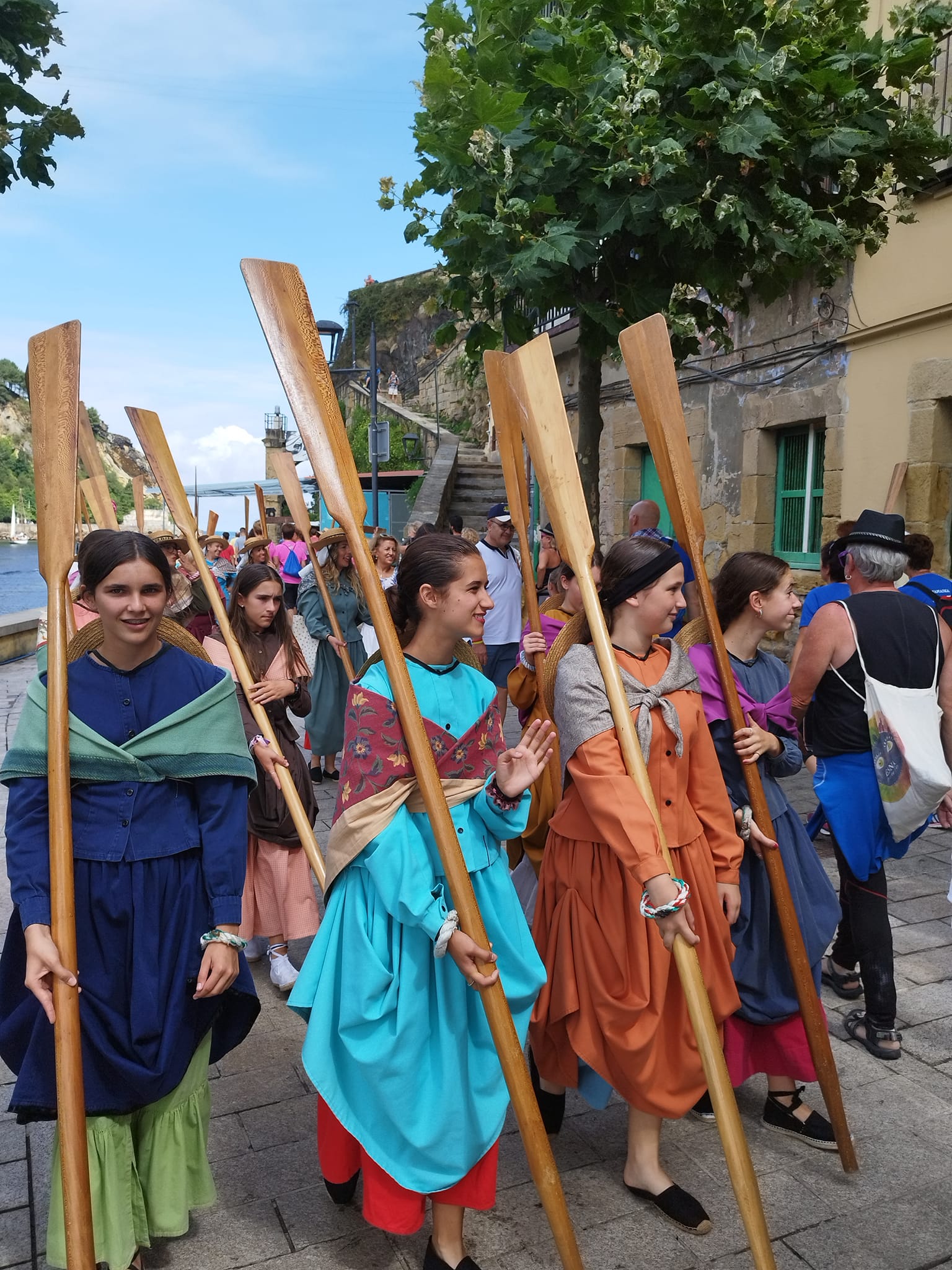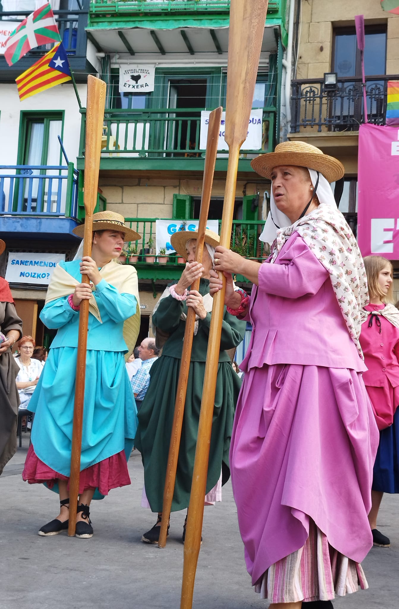 En las fiestas de San Juan se pone broche final con el Día de las bateleras. Un bonito y señalado día en el que se recuerda el oficio de mujeres desde inicios del siglo XVII, cruzando la bahía como ahora hacen las motoras Gure Antxote o Gure Torre. Qué bonitas palabras del escritor francés Victor Hugo, que en Pasaia vivió, sobre estas bateleras, como os reflejamos en nuestro libro «Lo que tu tierra te cuenta»…