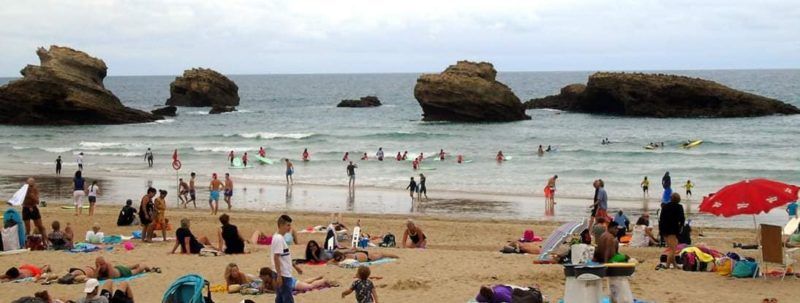 Y es que Biarritz fue posiblemente cuna del surf en Europa en 1957 gracias a sus grandes playas de muy buenas olas, no tan famosas por su tamaño como la cercana ola de Belharra, pero sí permiten hacer grandes competiciones mundiales. Seis kilómetros de playas de fina arena y aguas con algas que al añadir yodo, le dan un efecto terapéutico motivo por el cual se abrían grandes balnearios.