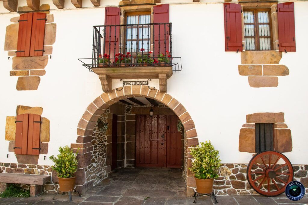 A partir de Oronoz-Mugaire, el río Baztán pasa a llamarse Bidasoa, cruza Santesteban y más adelante nos acerca a otros pueblos de postal, como Sumbilla o Etxalar, uno de mis favoritos, pues es un rincón que frecuentaba de niño con la familia. Etxalar es un pueblo que transmite tranquilidad entre sus elegantes casas señoriales, su plaza con un gran frontón, su columpio verde, su jardín de estelas en la iglesia, su lavadero, su riachuelo que cruza saltarín, su molino, sus geranios rojos en los balcones y sus grandes ruedas de carro en los portales. Nada cambia con el paso de los años. Una delicia.