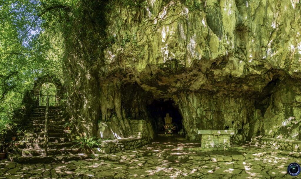 Una escalinata de piedra nos lleva hasta una pequeña gruta donde se encuentra la imagen del santo junto a un altar. Tres kilómetros más arriba se encuentra el pueblo de Arantza (Aranaz), en uno de los mejores entornos de montaña que haya visto.