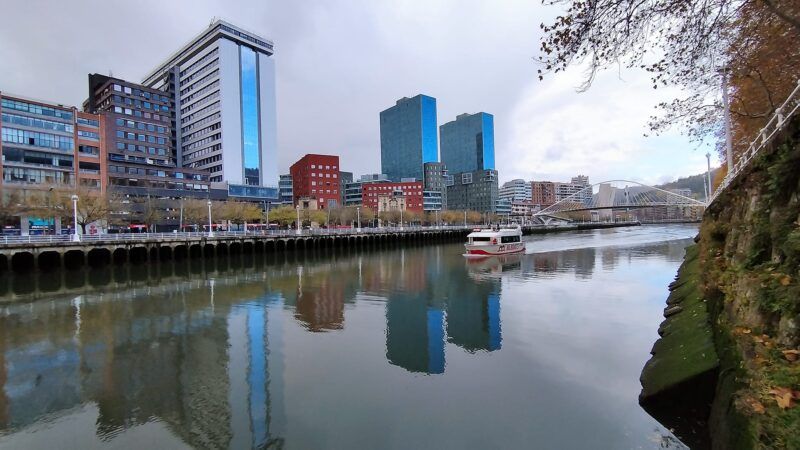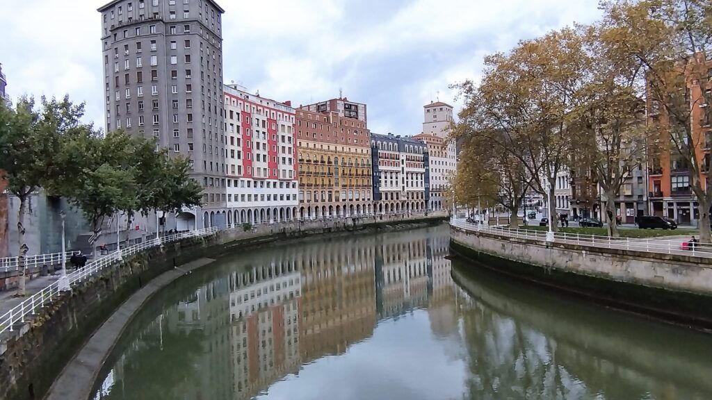 Ya en el otro lado de la ría veremos el Mercado de la Ribera, la Catedral de Santiago, el Casco Viejo, la Plaza Nueva, el Teatro Arriaga, el campo Volantín.