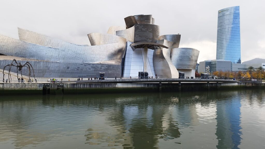 Evidentemente hay que referirse al icono actual de Bilbao. Inaugurado en octubre de 1997 ha superado cualquier expectativa de visitantes. Una gran escultura de titanio, piedra y cristal diseñada por el arquitecto norteamericano Frank Gehry. Tanto por fuera como por dentro, merece unas horas recorrerlo buscando ángulos, luces y sombras.