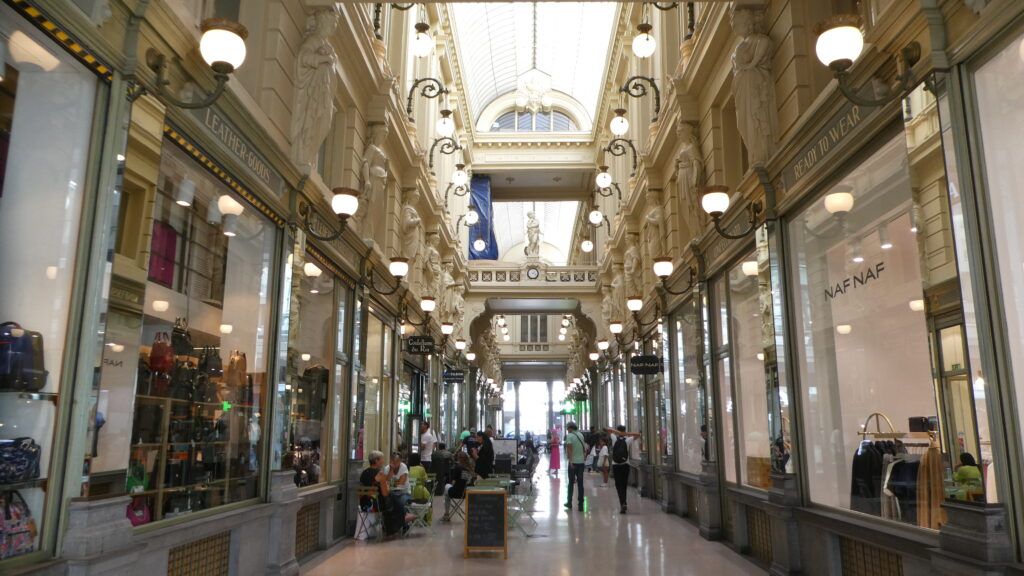 Se trata de un pasaje de 200 metros de preciosas boutiques, cubierta por una arcada de cristal y hierro forjado. Se divide en tres partes, la galería de la Reina, la galería del Rey y la galería de los Príncipes. Están en el pleno centro y comunican la Grande Place con la zona de la Monnaie.