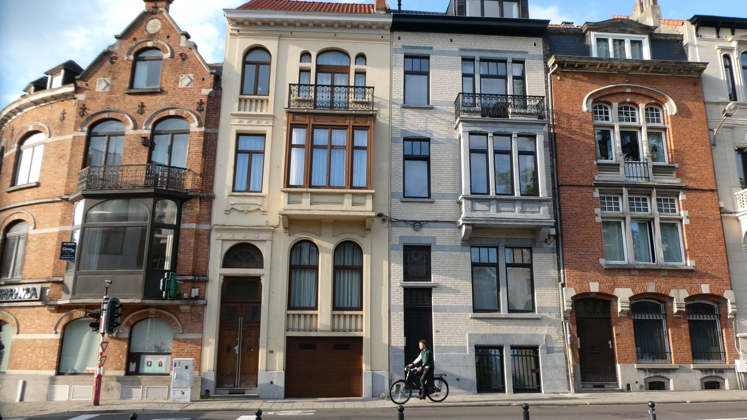 Desde la estación hasta nuestro hotel en el barrio de Schaerbeek lo hacemos en coche para disfrutar de los diferentes estilos de sus edificios, a modo de primer contacto.
