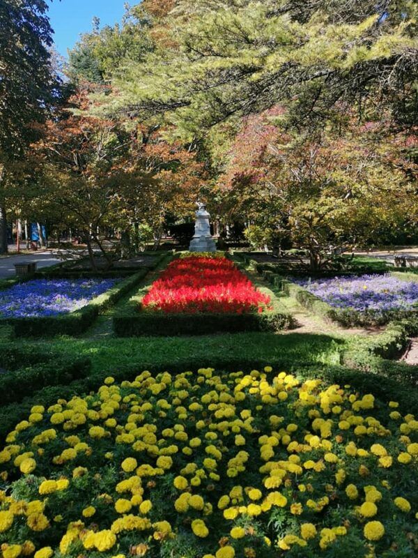 Comencé hacia las diez de la mañana desde el puente de Santa María y pegado a la margen del río más cercana a la Catedral que dejo a mi derecha, sigo hacia el puente de Bessón y el de Castilla con una rotonda. Continúo hacia el parque de la isla convertido en un pequeño jardín botánico donde no faltan los arcos, estanques y bonitos jardines de flores.
