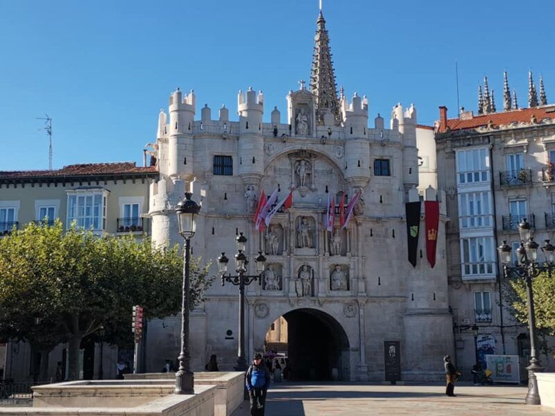Por la derecha entro en las calles Santa Águeda y Nuño Rasura con nuevos puntos de vista de la imponente Catedral. Llegamos ahora al puente del Bessón, el llamado Burgos más burgués, para regresar hacia la Catedral por el arco de Santa María.
