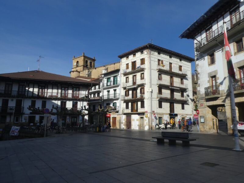 Las disimuladas marcas en el suelo guían fácilmente al peregrino para continuar por Kale Nagusia-Calle Mayor donde ya aparecen las clásicas marcas amarillas que nos conducirán sin problemas hasta Oiartzun. Conocer una localidad caminando siempre tiene su aliciente pues sirve para hacerse uno la idea de su criterio urbanístico, y eso sucede en la ciudad fronteriza en dirección al barrio de Ventas donde girando a la izquierda, abandonamos la zona urbana para penetrar en el desconocido mundo rural de Irun.