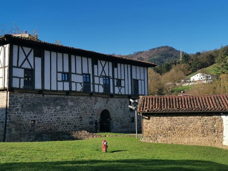 En nuestro continuación hacia los confines de Gipuzkoa no deberemos dejar de visitar el conjunto monumental de Igartza, (Las flechas amarillas seguirán presentes como ayuda) un yacimiento medieval con un palacio del siglo XIII, con un puente , una presa de madera, una ferrería y un molino, con otros elementos.