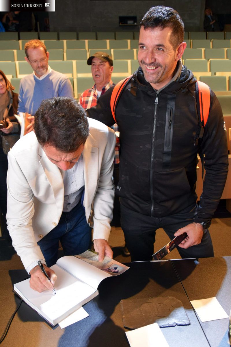 El autor Carlos Bengoa, periodista radiofónico en el grupo del Diario vasco durante 25 años, junto al editor Marcos Sánchez de Singlator Ediciones y el montañero Jesus Mari Alquézar, colaborador en las redes de Donosti City presentaron el evento que contó con dos vídeos, uno promocional de la editorial y otro con el book trailer del libro, que podéis ver en los enlaces de abajo. Carlos presentaba los 20 capítulos en la pantalla gigante del Auditorio acompañado de gran material fotográfico.