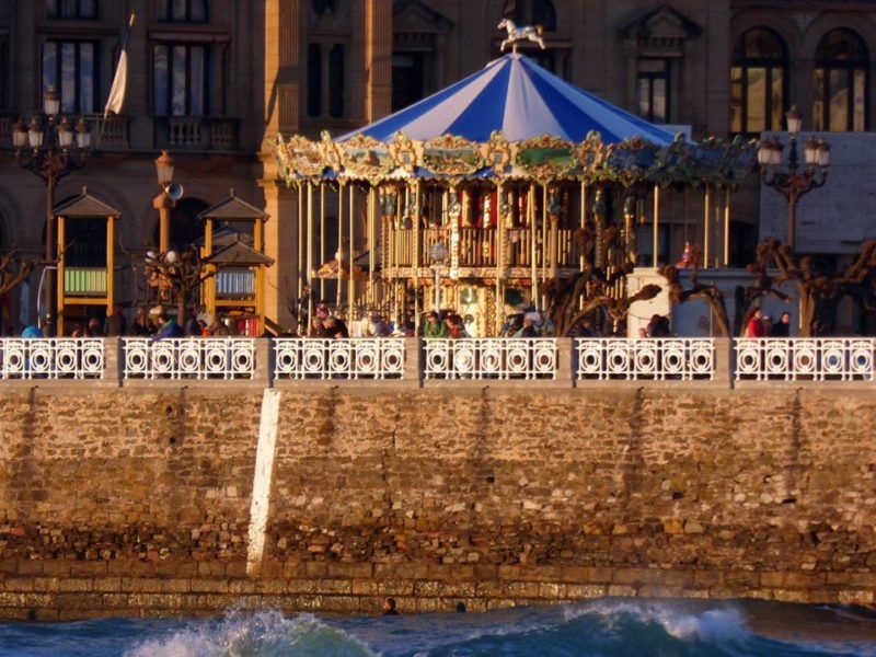 Junto al Ayuntamiento , casi rozando la barandilla de la Concha y a un palmo del Naútico, este Tiovivo reproduce al tradicional carrusel de la Belle Epoque. Vistosos caballos, alegres delfines, carruajes de princesas… harán las delicias de los pequeños mientras dan vueltas y vueltas siempre ante la mirada atenta de la abuelita… no vaya a ser que de un mal paso.