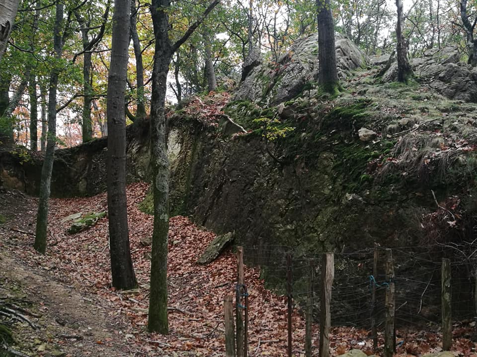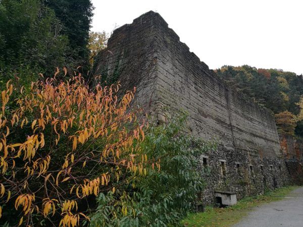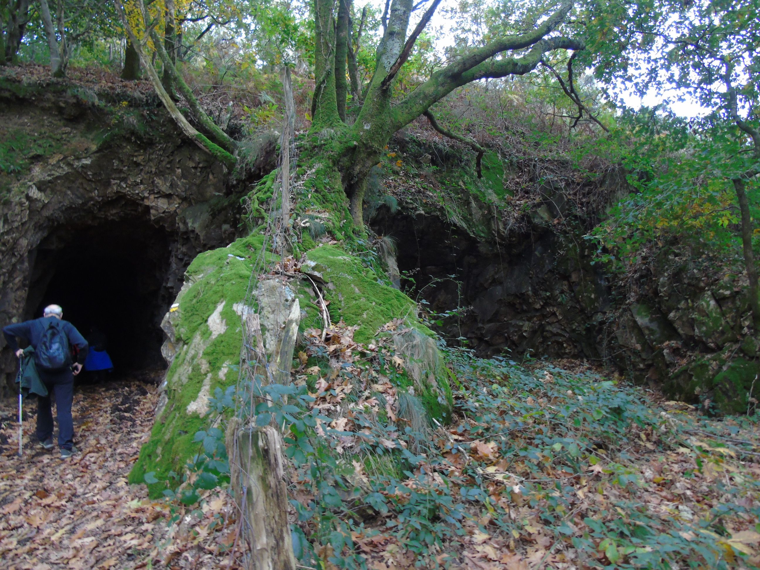 Un empinado sendero nos va llevando hasta los restos de unos muros que soportaban el peso de la maquinaria, hasta alcanzar una serie de túneles.