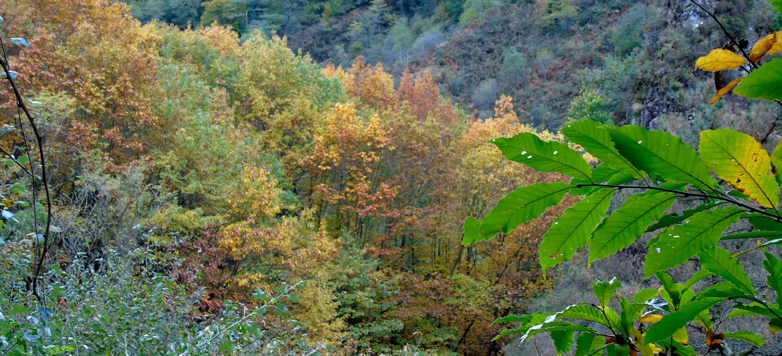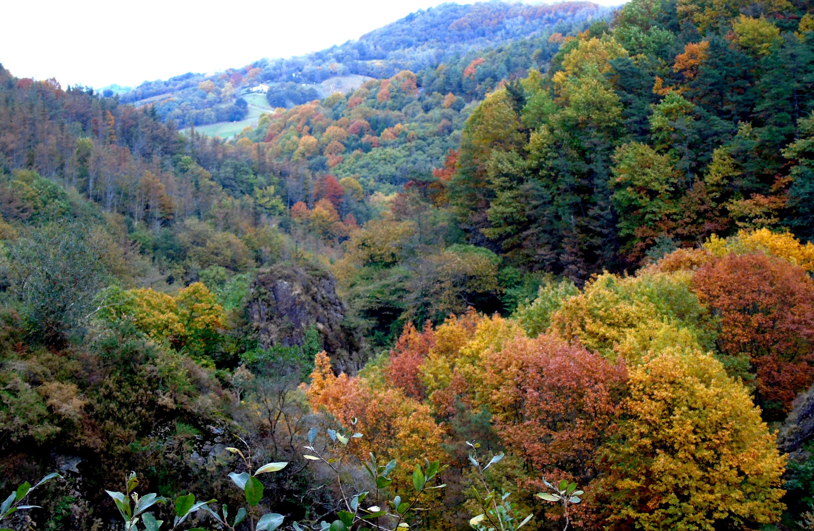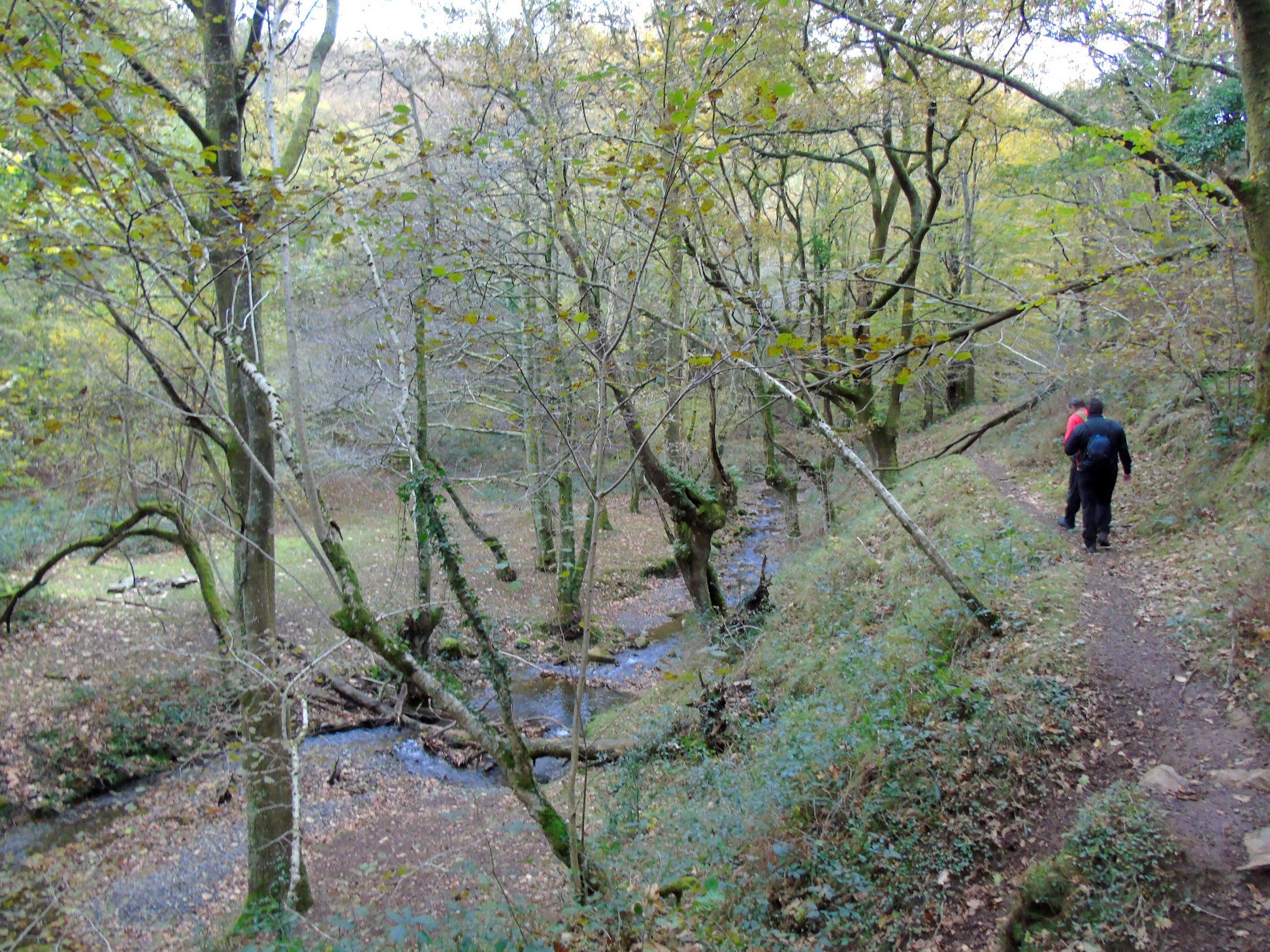 Sigue el recorrido buscando las faldas del Monte Askain hasta los restos de las minas de Meazuri disfrutando del frondoso bosque que en esta época va perdiendo hojas. Regresando por el mismo sitio y tras pasar de nuevo los túneles una empinada ladera descendente nos lleva hacia la pista señalizada de la Cascada de Irusta que tomamos hasta llegar a un sendero zigzagueante ayudado por una barandilla.