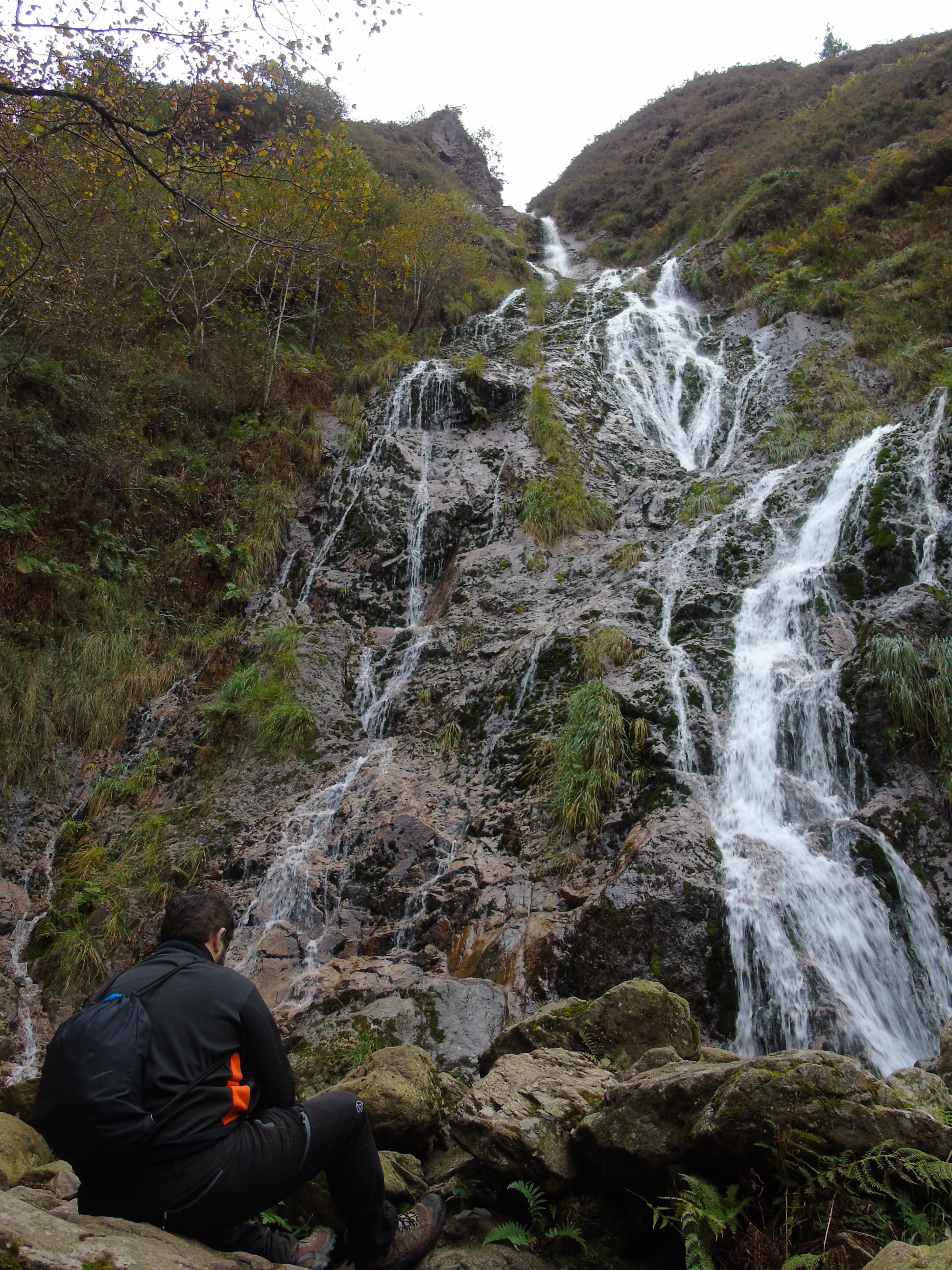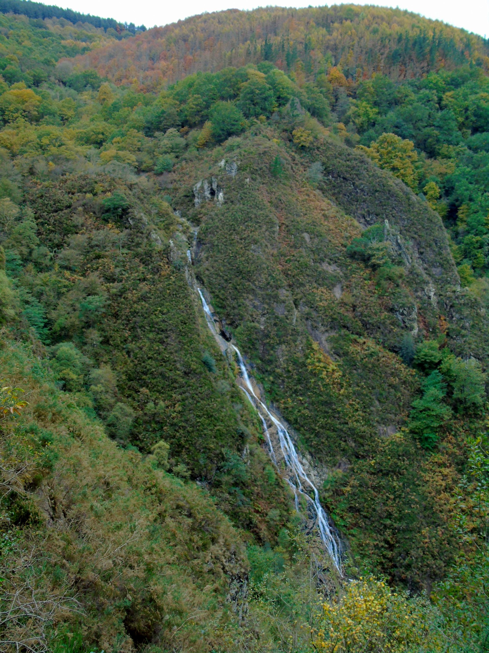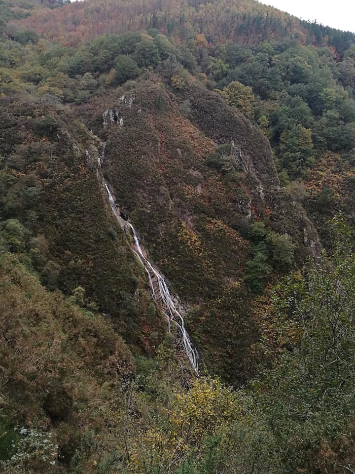 Cruzamos la erreka ( con mucha agua sería imposible )para ver desde su base la caída de la cascada y sus casi 140 metros de altura. Un espectáculo gratificante que puso colofón a una magnífica excursión. La caída de la cascada en varios tramos, ya con mucha agua en esta época, gastó gran parte de las baterías de nuestras cámaras, aunque el corto tramo hasta su base se hizo muy difícil.