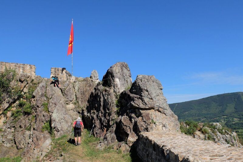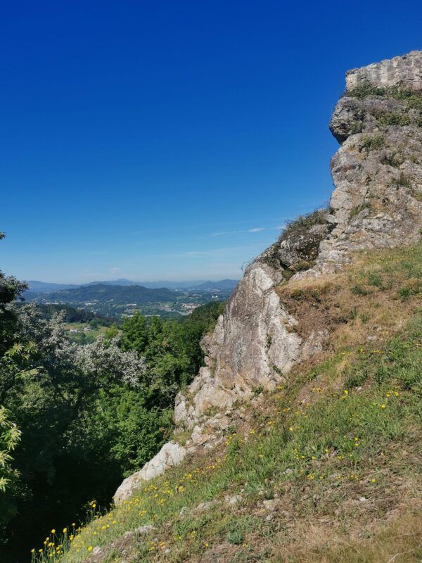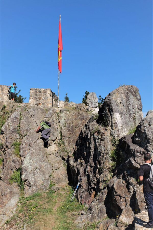 Al llegar a la pequeña cima del cordal Arkale – Arkaleko Arkaitzak, a 272 metros de altitud, destaca la presencia de este rincón que nos devuelve al pasado quedando sorprendidos por los muros del castillo de Beloaga con su bandera roja del reino de Navarra.
