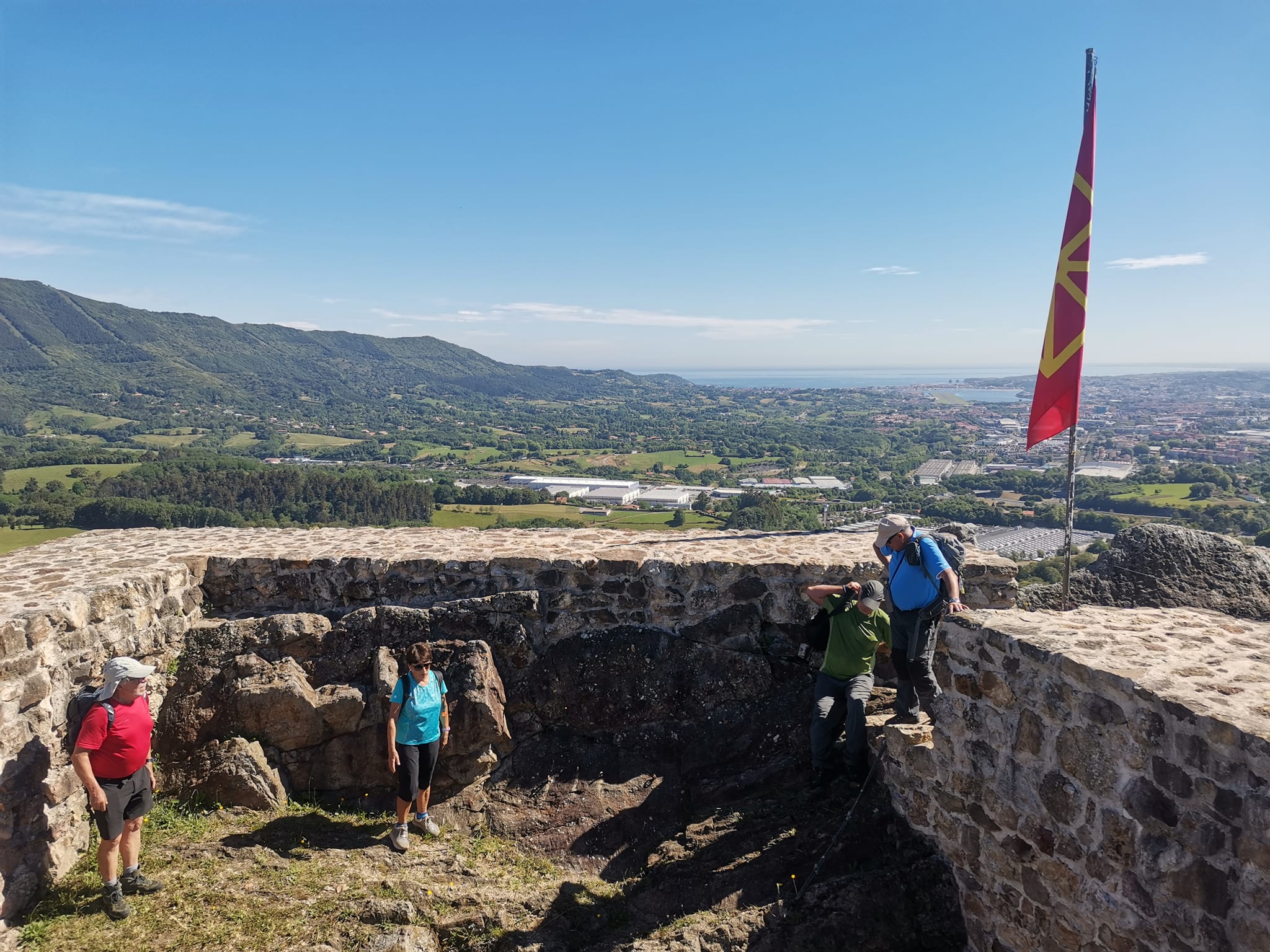 En la cruz VII debemos girar a la izquierda y seguir el camino jalonado de cruces, para recuperar de nuevo el PR y bajo un hermoso bosque de castaños y robles americanos se alcanza la amplia cumbre dotada de una cruz, un altar, una gran ikurriña y una cercana antena, destacando el bello horizonte que desde allí se divisa. Como escribíamos en otra línea, del primitivo fuerte no queda nada.