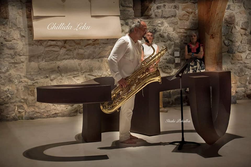 Una nueva experiencia en Chillida Leku. Paseo entre esculturas de la mano del cuarteto de saxos, Sigma Project, bajo el título » Sigma Chillida Besarkatuz « y textos de diversos autores leídos por Inés Ruiz Artola.