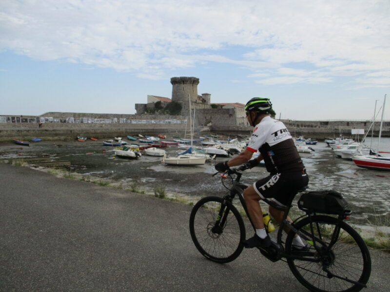 Allí a la derecha balizada por la variante de la Velodyssée y “liason velo,” un poco concurrido itinerario en diente de sierra con tramos cortos pero duros hasta el 20% hemos llegado a Sokoa y hemos visitado como novedad su castillo- era la primera vez que lo hacíamos – cuya historia no relatamos en este modesto reportaje.