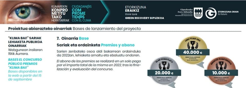 KlimaBai!, es un concurso diseñado por el departamento de Medio Ambiente de la Diputación Foral de Gipuzkoa con el objetivo de sensibilizar y formar a la ciudadanía en la acción climática.