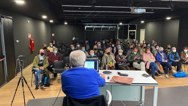 Con una buena asistencia, más de 70 personas presenciales entre los dos grupos (y una decena por videoconferencia), con una exquisita ventilación de la sala, el taller lo ha impartido Javier Navascués sobre “Yacimientos prehistóricos en Gipuzkoa”.