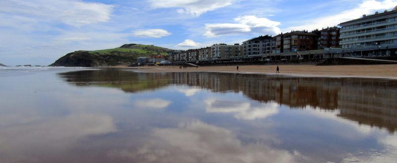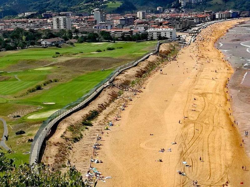 Precisamente desde este mirador veré a mis pies el biotopo de Inurritza, punto inicial de la visita a Zarautz. Es más espectacular con la marea baja pero aun así podré ver aves migratorias en sus aguas que con la ayuda del mar forman una pequeña marisma. Tras bajar las escaleras y siempre en una pasarela de madera muy fotografiada entro ya en Zarautz por la zona del golf y las dunas castigadas por los durísimos temporales del año 2014 que destruyó gran parte del ecosistema y casi todo el paseo marítimo. De nuevo la violencia del mar en nuestras costas.