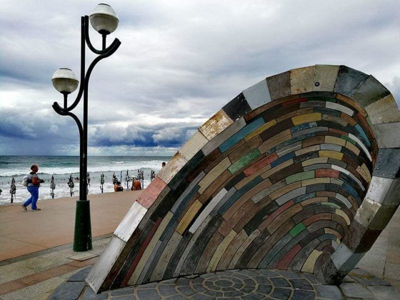 Los cubos o “Canons 22” de Elena Asins, la “Dama de Zarautz” de Marcos Hernando, “A Través De” obra de Dora Salazar, “Aspersión-Vertido” también de Dora Salazar y la más llamativa es la colorística “Joan Etorrian” de Miguel Angel Lertxundi hecha en maderas de castaño y acacia procedente de restos de barcos. Muy buscada por los fotógrafos. Ya al final del paseo junto al Palacio de Narro termina la serie con “Itsas lema” de Juanjo Gurrea en homenaje a los astilleros Txiliku.