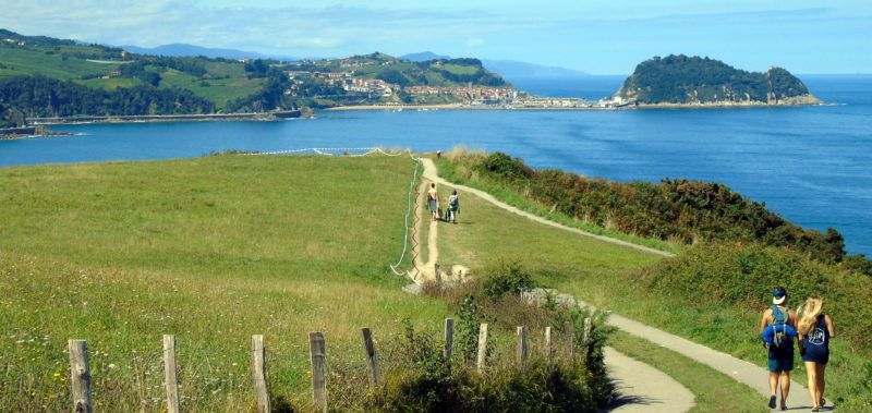 Miro el mar intentando ver algún buque pero lo que veo ahora son motoras, veleros, algún catamarán. Al Este quedan las laderas de Igeldo, de Jaizkibel. Al Oeste, Zarautz, Getaria y su ratón. Detrás de mí una ladera que une dos pueblos de obligada visita. Llega de Orio el olor a besugo mientras una trainera amarilla surca la ría. Más moderna Zarautz con actividad surfera afamada y su largo paseo marítimo tan azotado por el mar. En medio de ambas, la colina verde procedente de Aia, vestida de viñedos capaces de regalarnos el preciado txakolí.