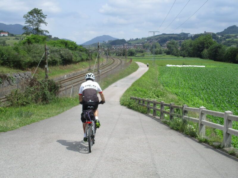 Y después desde Anoeta, una preciosa vía ciclable, rural y de campiña, paralela a la vía del tren y a la autovía nos conduce hasta Villabona, donde esperamos al tren de cercanías que nos transportará a San Sebastián, fin de la hoja de ruta.