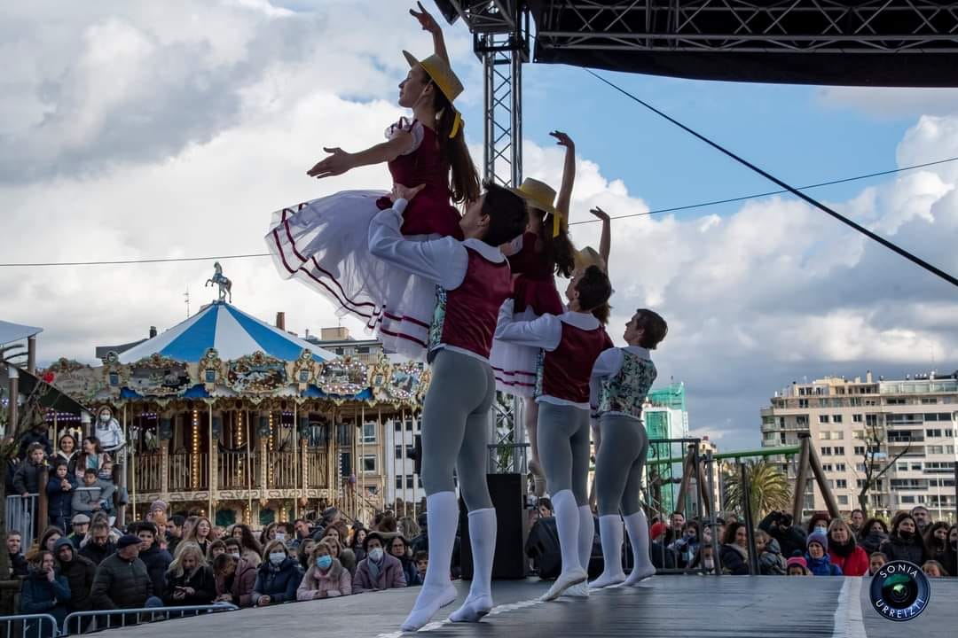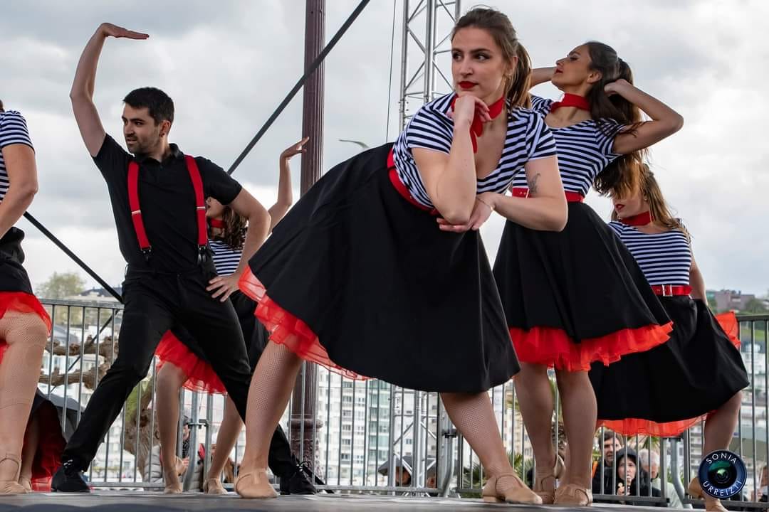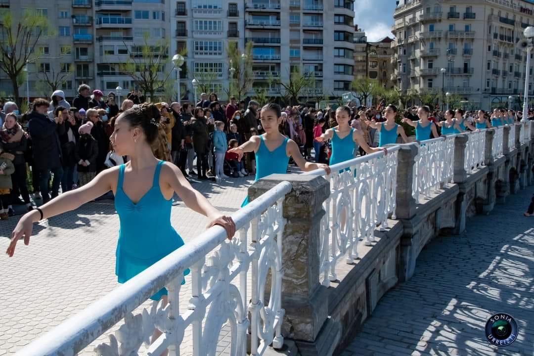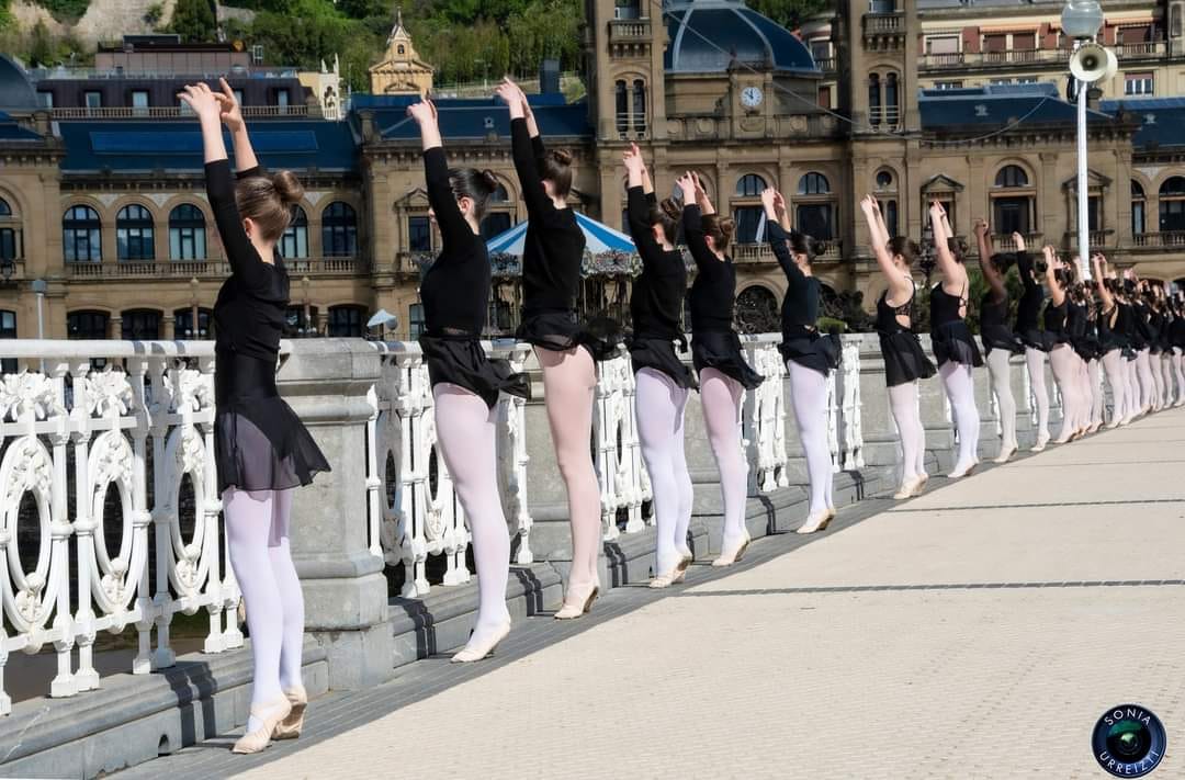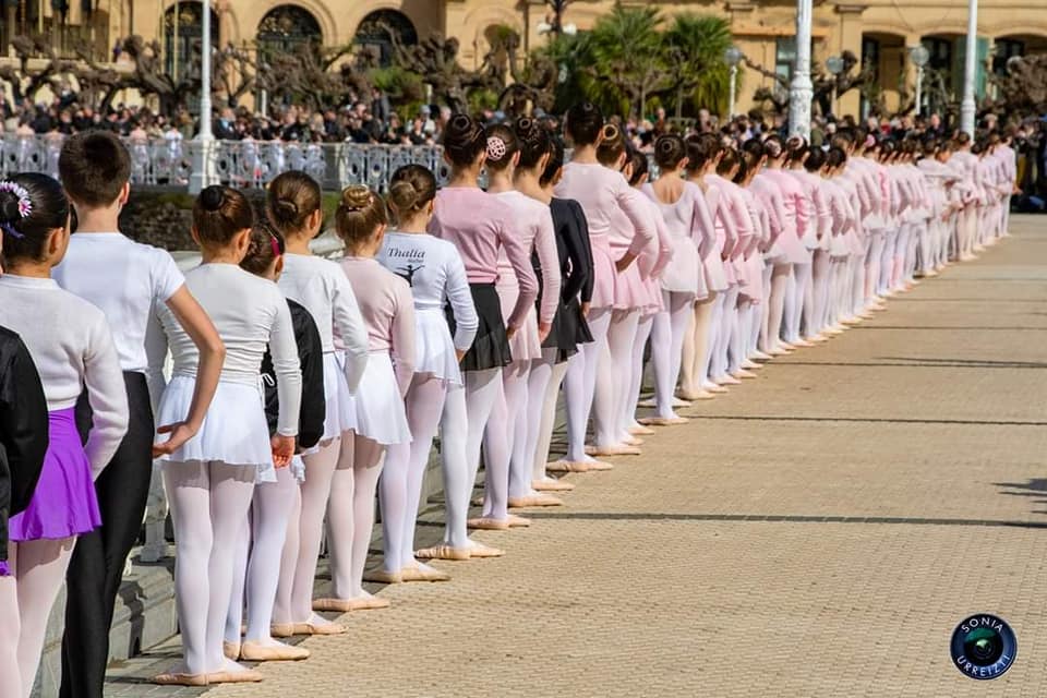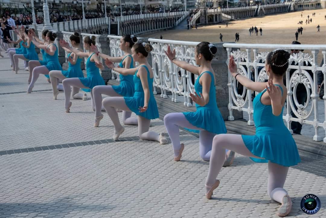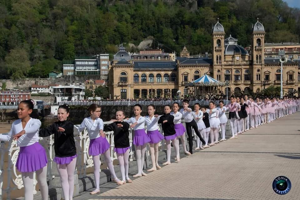 Tras la pandemia, vuelve la danza a inundar de bailarin@s la barandilla de La Concha. Miles de participantes de todas las escuelas de danza de Gipuzkoa.