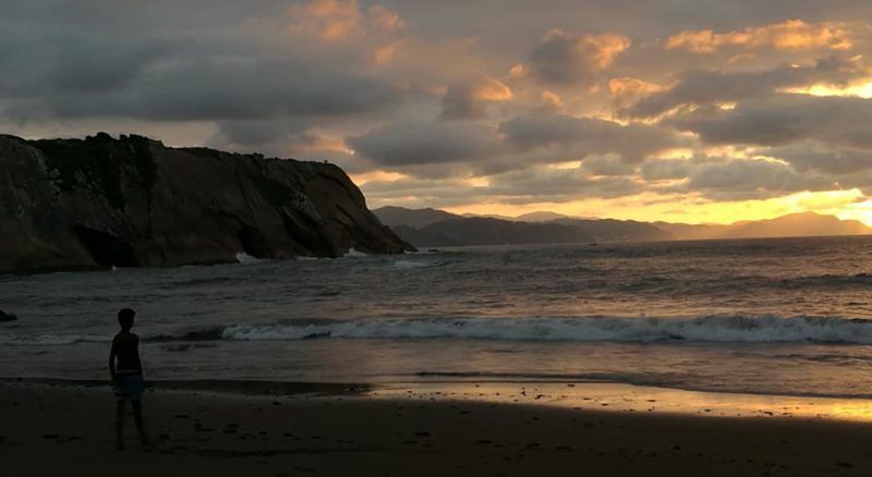 Prueba en verano a salir de la rutina de La Concha o Zurriola y aunque sean las 19,00 horas tienes tiempo en coche o en el bus de línea hasta Zumaia. Baja a Itzurun y date un baño con el sol detrás de las olas y bendice tal suerte. Después en el chiringuito de playa, una cerveza y un menú y recuerda el » no tiempo » del virus. Seguro serás capaz de cantar el Himno de la alegría tú solo mientras entiendes que en esos acantilados está la historia geológica de la tierra a la vista.