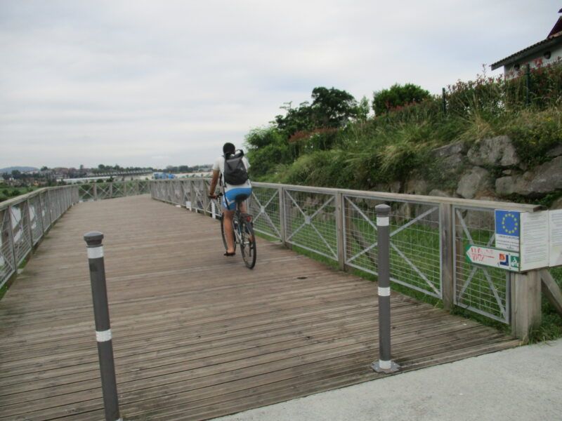 Cruzamos el Bidasoa por el actual y moderno puente internacional de Behobia, inaugurado en 1971. De amplias calzadas, es la puerta del barrio francés de Behobie, desde donde se cambia la dirección del círculo hacia Hendaia por el paseo peatonal ahora en la orilla derecha del Bidasoa.