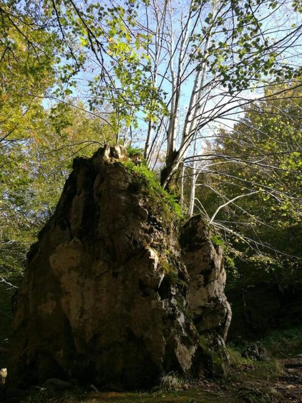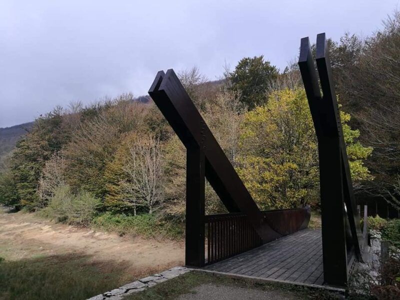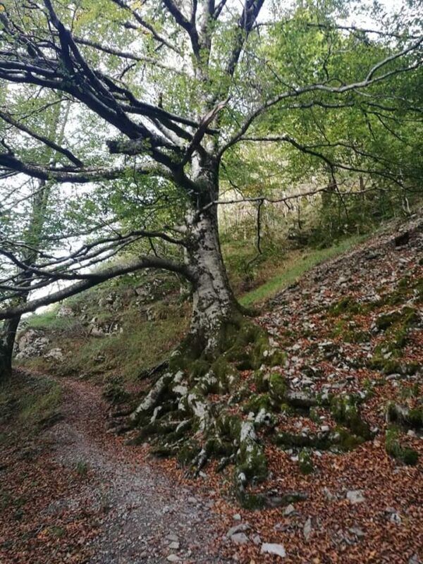 Un paseo corto, de unos 45 minutos hasta el embalse entre un bosque de hayas, con un breve paso estrecho ( por si acaso hay pasamanos ), un pequeño túnel y varias langas. Apenas hay 125 metros de desnivel en un paseo de kilómetro y medio muy entretenido.