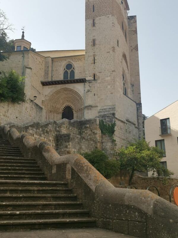 Fue una delicia caminar temprano por su Puente de la Cárcel, las calles del viejo burgo de la Rúa, la Plaza de los Fueros que ya preparaba el colorido mercado repleto de frutas y verduras, y desayunar en la Mayorquina, así, con Y, que por algo está en la calle Mayor, antigua mallorquina con ll, donde un café con leche y una ensaimada blanca ayudó a recordar los puntos de paso de nuestra visita.