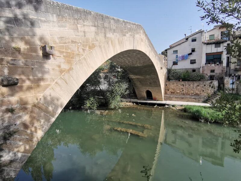 También llamado puente picudo, y con razón, pues presenta un desnivel del 20 % Destruido en el 1873 con motivo de las guerras carlistas, se reconstruyó siguiendo el mismo modelo. Es uno de los puntos más importantes del Camino de Santiago de Navarra.