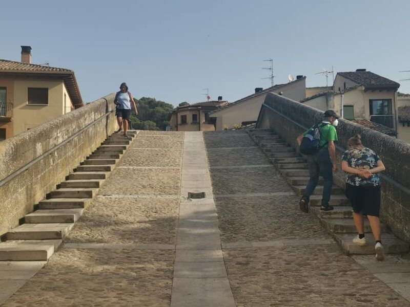Con seguridad nos cruzaremos con peregrinos que tienen en Estella un punto mítico del Camino de Santiago. A pie o en bicicleta hasta 200.000 llegaban a pasar en un año normalito antes de la pandemia.