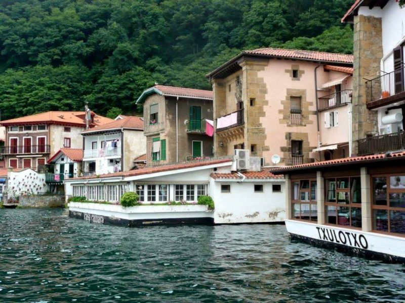 Una belleza su clásica estampa mil veces fotografiada. Casas esbeltas y estrechas con fachadas y balcones de colores literalmente pegadas a la pared vertical que ha creado el monte. Un espacio cuadrangular que sirve hasta de frontón provisional aprovechando una de las paredes de los edificios y pista de balonmano donde se llegaban a jugar partidos. Resulta muy bonito ver la plaza y en realidad todo el pueblo en los días de mareas muy altas que suelen darse por Setiembre con el agua a un palmo de la plaza. En verano no suele haber temporales ya que cuando hay olas, llegan a inundar el pueblo. La estampa del pueblo ante las mareas vivas le dan un toque muy “ veneciano”
