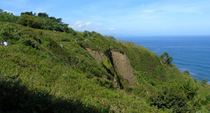 Sigo el sendero evidente hasta llegar enseguida a un cruce de caminos. El de la derecha lleva en otros diez minutos a la rotonda del albergue de Ulía hasta donde podría ir en coche por la carretera y de ahí por el antiguo tiro al plato hasta la zona de las ikastolas. Pero como mi idea es ver más cosas, andar, hacer deporte y estar en contacto con el mar, tomo el sendero de la izquierda que me lleva a la parte alta de los acantilados de las gaviotas.