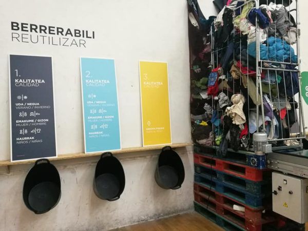 - » Trabajamos dos áreas, la economía solidaria y la inclusión social de personas en situación de exclusión o de riesgo de exclusión. Gestionamos centros residenciales propiedad de Diputación, acompañamos a las personas para convertirlas de nuevo en ciudadanos activos. Además tenemos los centros de economía solidaria como esta Factory de Emaús centrada en la reutilización. La ropa nos llega bien por la gente que nos trae a nuestros puntos de venta, bien cuando la recogemos en sus domicilios o bien la que llega vía contenedor principalmente del Alto Deba y Tolosaldea. Cada vez nos llega material más nuevo, aquí hacemos una criba en nivel 1, 2 ó 3 según el estado en el que llega la ropa y según sea ropa de verano o invierno. Si necesita un mínimo arreglo lo hacemos para llevar después a los puntos de venta, el Ekocenter de Irún, Rentería o Plaza del Centenario y lo que no vale separamos el algodón para otros fines. El resto va a una empresa francesa que recicla los materiales para temas de construcción»
