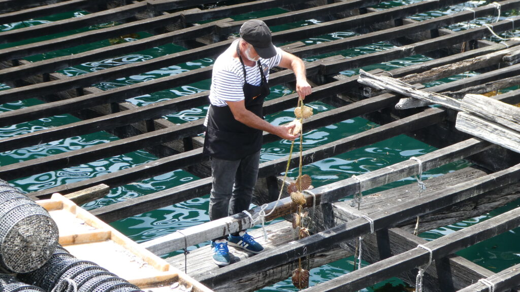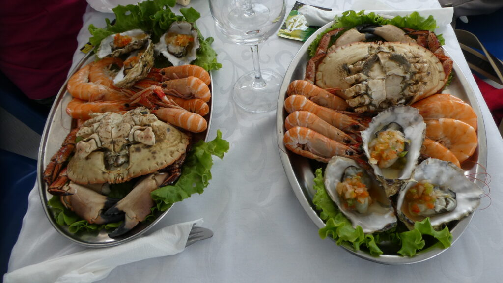 Montemos en un catamarán que nos esperará para visitar las bateas donde se cultiva el mejillón gallego y las ostras, y durante el paseo, comamos una generosa mariscada bien regada con godello.